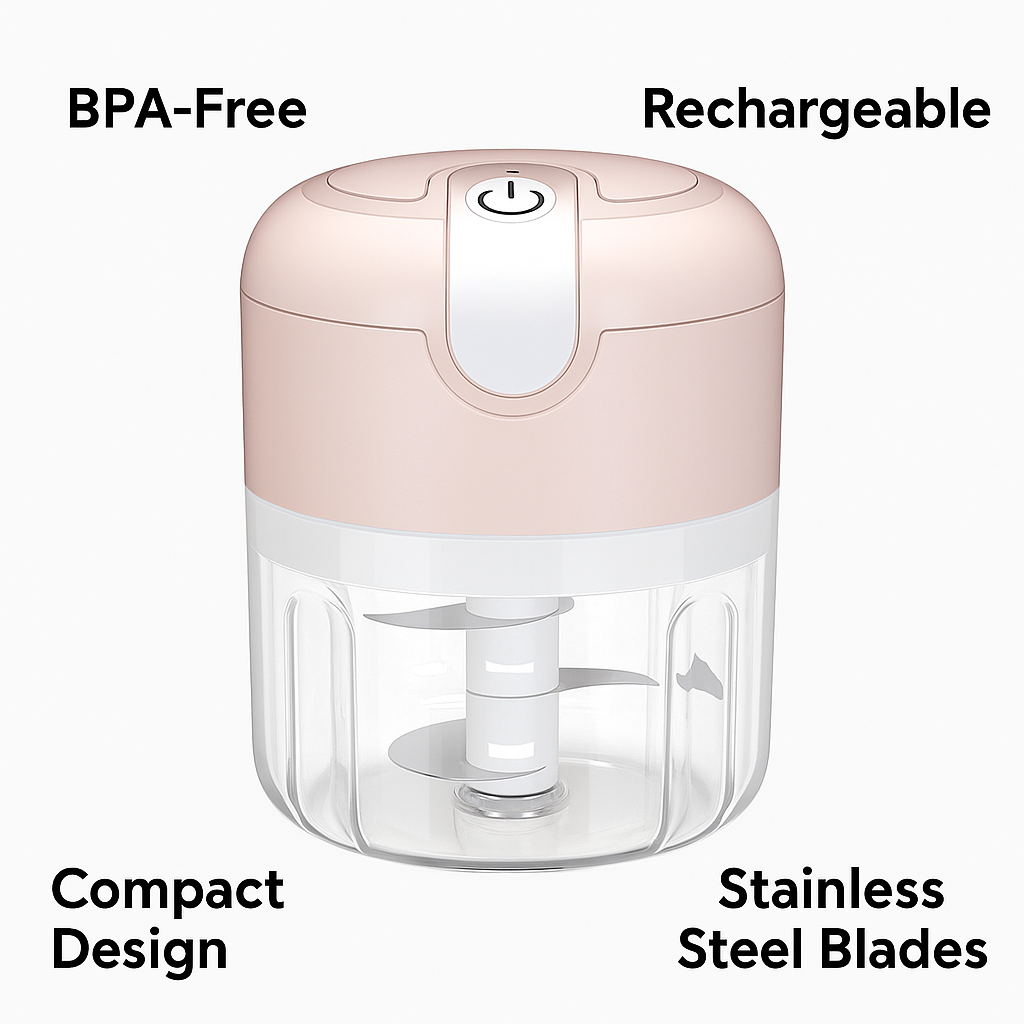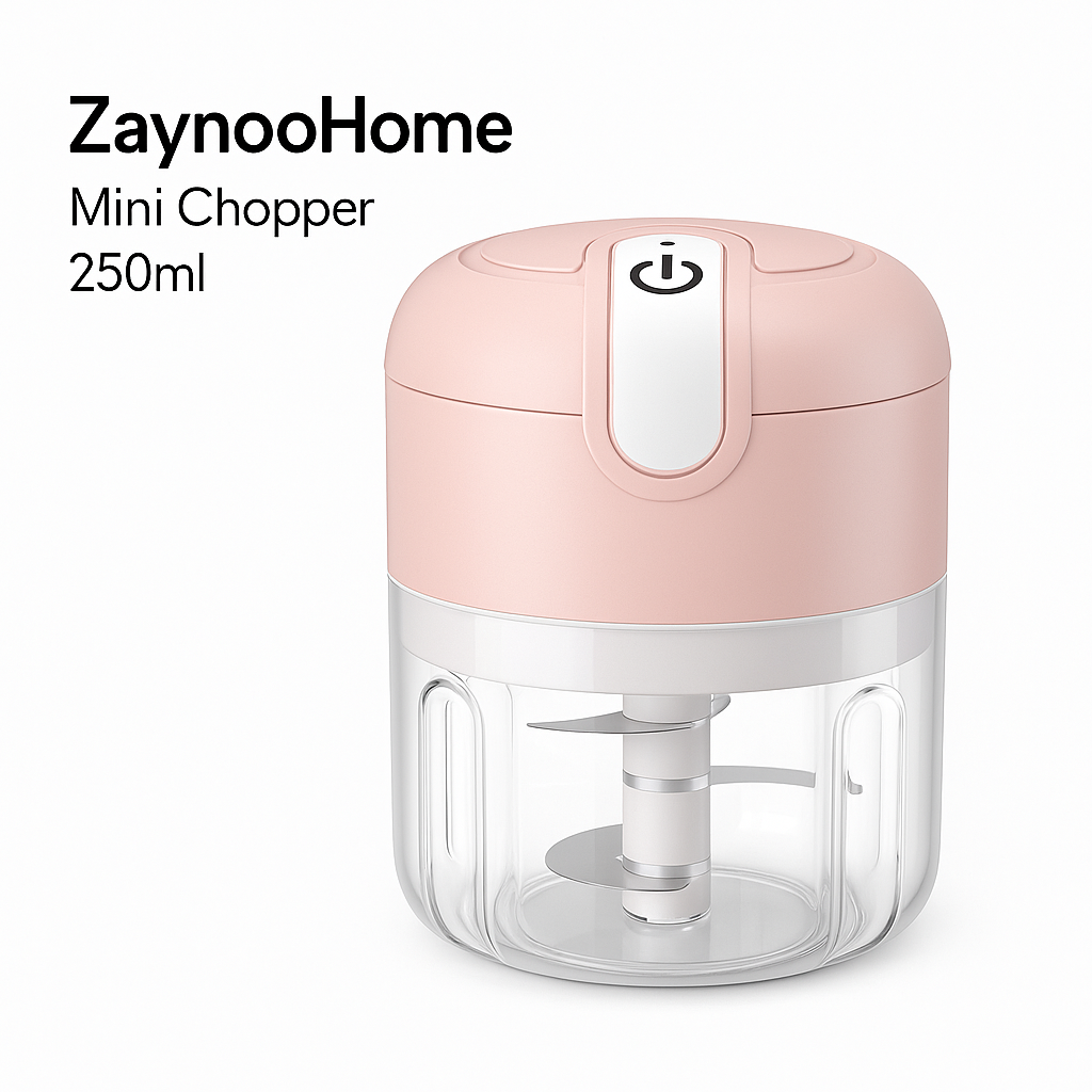 The ZaynooHome Electric Mini Food Chopper is your compact kitchen companion for fast and effortless meal preparation. Designed with a 250ml bowl and durable stainless-steel blades, it easily chops garlic, onions, herbs, nuts, vegetables, and more in just a few seconds. This rechargeable and portable mini chopper offers wireless convenience with a long-lasting battery, allowing you to use it anywhere — at home, in the office, or even outdoors. Its powerful motor ensures even cutting and smooth texture for sauces, salads, and baby food. The detachable parts make it easy to clean, while the one-touch operation simplifies your cooking routine. Whether you’re preparing small meals or quick snacks, the ZaynooHome Mini Chopper delivers speed, precision, and style in one compact design — making it a must-have appliance for every modern kitchen.